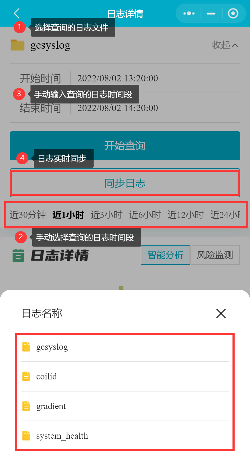 - GE-MR设备支持选择包括gesyslog、coilid、gradient、system_health在内的多个日志文件查询;