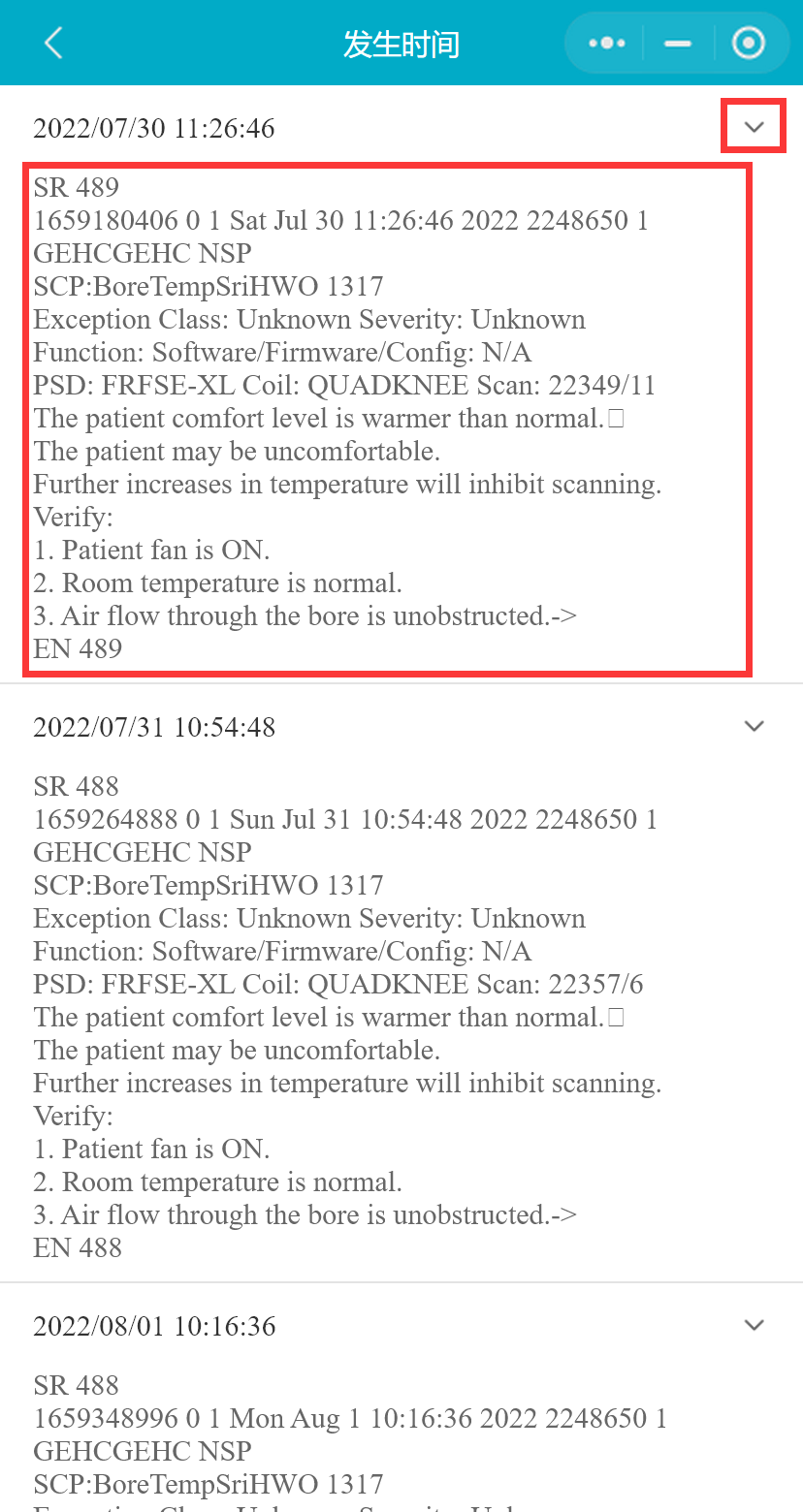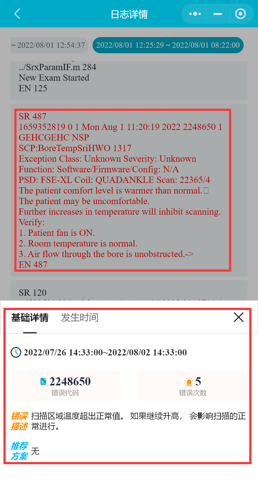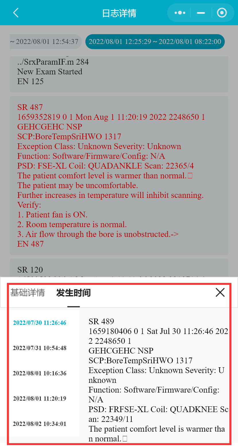 SIEMENS-MR设备支持选择包括EvtApplication、EvtSystem、EvtCustomerLog、MrSystemManager在内的多个日志文件查询(该设备不支持智能分析和风险监测)