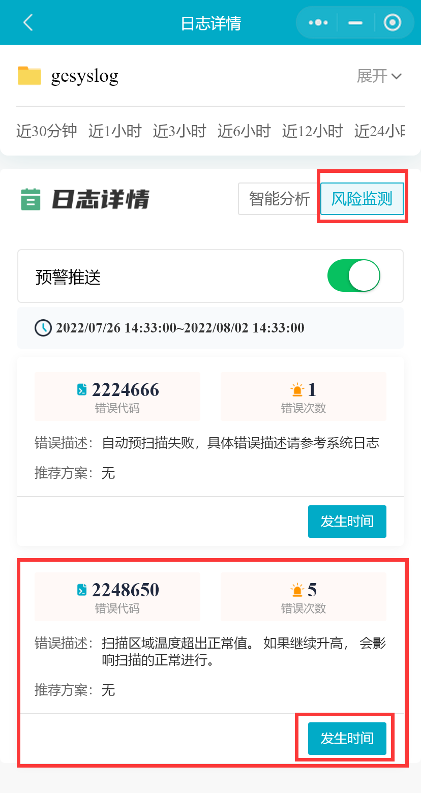 系统支持根据错误代码自动生成当前查询时间段内风险监测列表