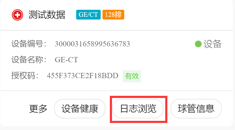 UnitedImaging-CT设备支持选择包括TubeLog在内的1个日志文件查询(该设备不支持智能分析和风险监测)