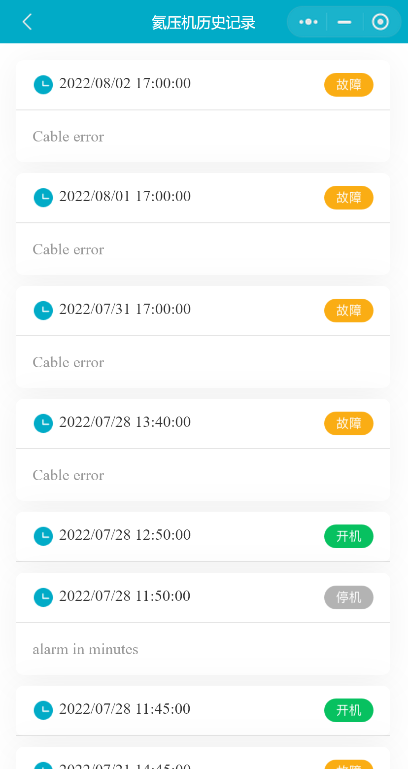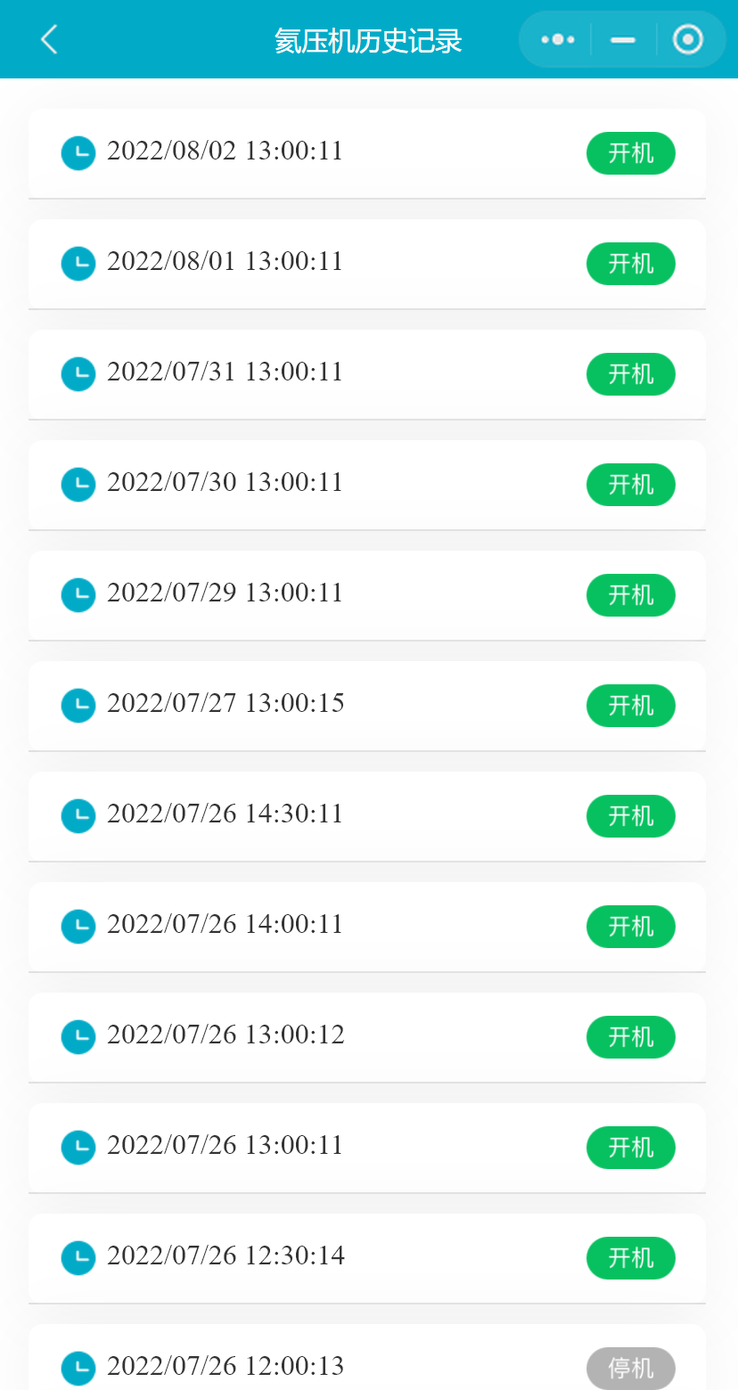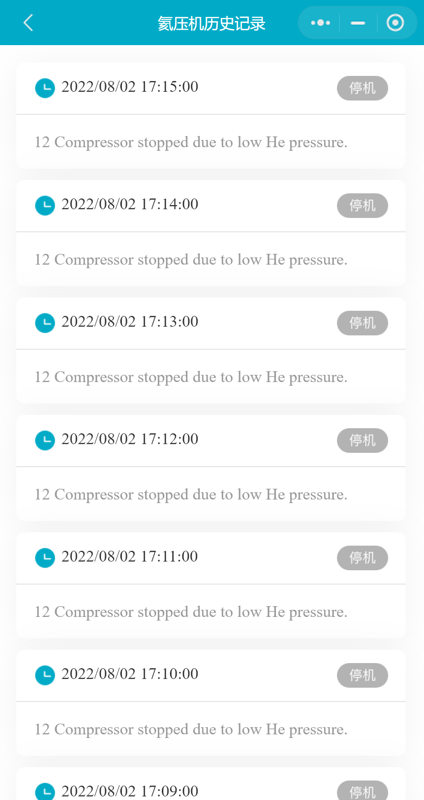 小程序支持用户查看最近30天的氦压机状态历史记录